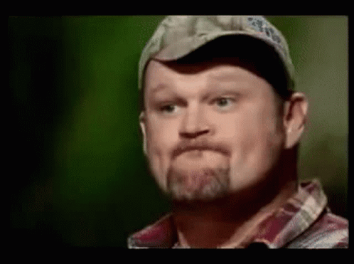 Man in a hat and plaid shirt making a thoughtful 'hmmm' expression.