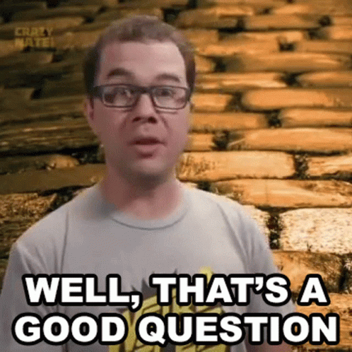 Crazy Nate, wearing glasses, responds with 'Well, that's a good question' against a brick wall background.