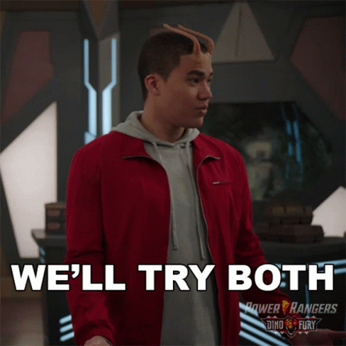 Zayto, the Red Dino Fury Ranger, states 'We'll try both' in a scene from Power Rangers Dino Fury.