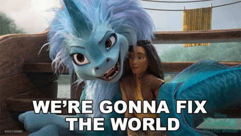 Sisu and Raya from Disney's Raya and the Last Dragon declare they're going to fix the world.