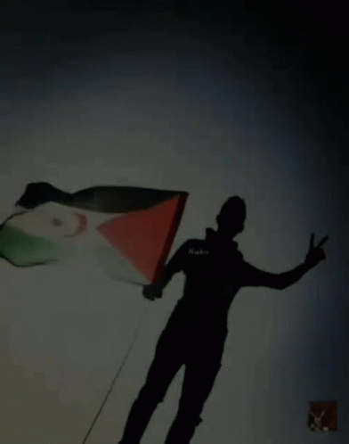 Silhouette of a person holding the Western Sahara (SADR) flag, making a peace sign, with 'Nako' on their back.