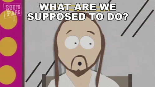 Jesus from South Park looks concerned, asking the iconic question, 'What are we supposed to do?'