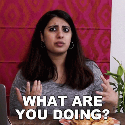 Sukanya, with a surprised expression, asks 'What Are You Doing?' with hands raised.