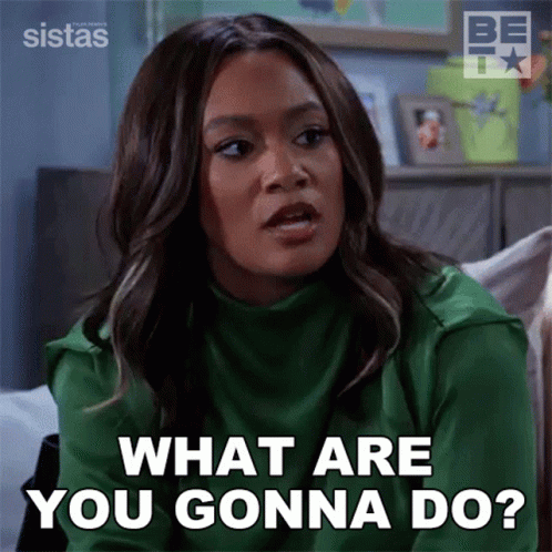 Fatima, portrayed by Crystal Renee Hayslett in Sistas, asks 'What Are You Gonna Do?' with a questioning look.