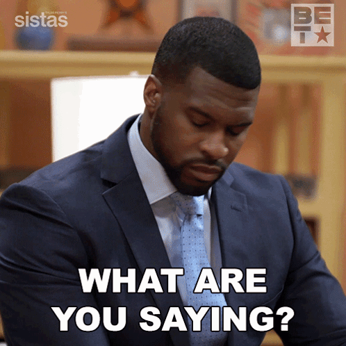 Tony King, in a suit, asks 'What are you saying?' in a scene from BET's Sistas.