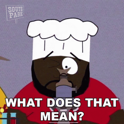 South Park's Chef (Jerome McElroy) looks confused, asking 'What does that mean?' into a microphone.
