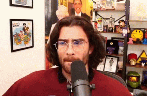 Hasan Piker reacts with a confused expression and a head tilt, with the caption 'WHAT' appearing on screen.