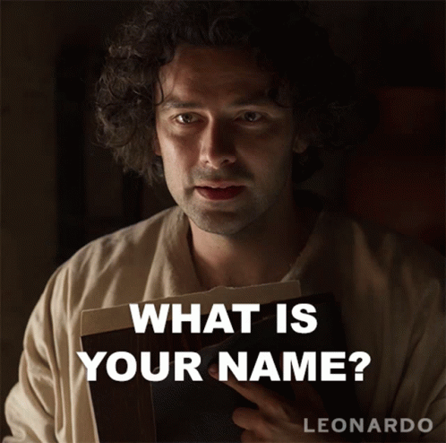 Aidan Turner as Leonardo Da Vinci holds a book and asks 'What is your name?'