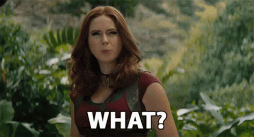 Karen Gillan as Ruby Roundhouse looks surprised and confused in the Jumanji jungle.