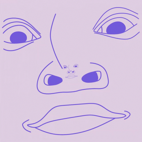 A bizarre and surreal animation featuring a morphing face on a purple background, evoking a sense of wonder.
