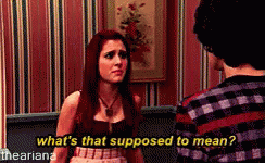 Ariana Grande as Cat Valentine asks 'What's that supposed to mean?' in a scene from Victorious.