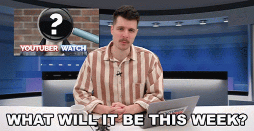 Benedict Townsend sits at a desk, posing the question 'What Will It Be This Week?' for 'Youtuber Watch'.