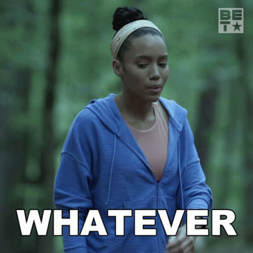 Najah Bradley as Luisa walks through a forest, expressing a 'Whatever' attitude.