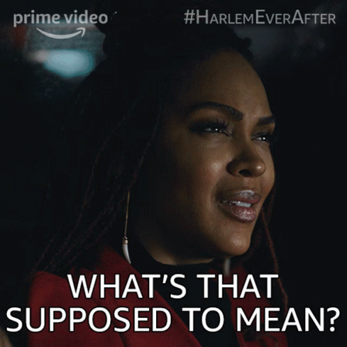 Meagan Good as Camille expresses confusion, asking 'What's that supposed to mean?' in a scene from Harlem.