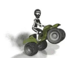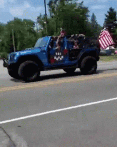 An ATV performs a wheelie stunt during a 4th of July parade, entertaining spectators.