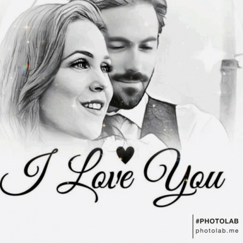 Lucas and Elizabeth from When Calls The Heart in a romantic black and white photo with 'I Love You' text.