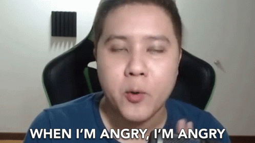 A person emphatically states, "When I'm angry, I'm angry," expressing strong emotion.