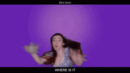 Malinda Kathleen Reese screams 'Where is it?' with 'He's here!' text, against a vibrant purple background.