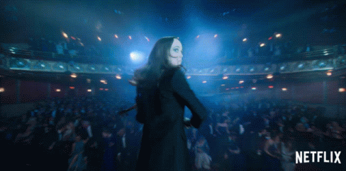 Vanya Hargreeves, played by Ellen Page, performs a magic whip light dance on stage for a large crowd.