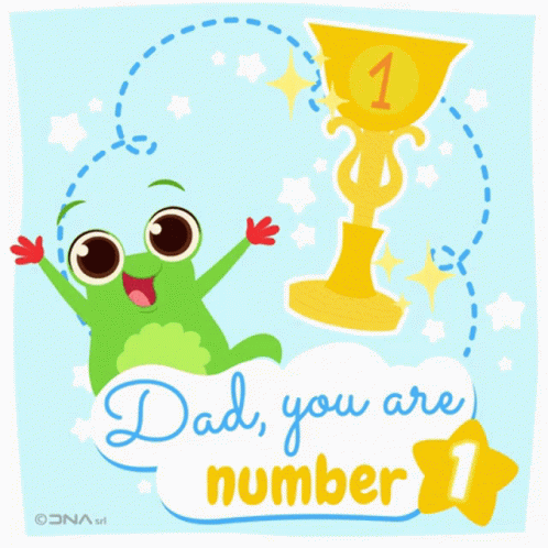 Whiskey Ei Suoi Amici's frog celebrates Dad as number one with a golden trophy.