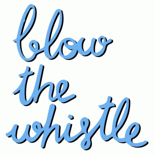 Animated graphic displaying the phrase 'blow the whistle' in pink cursive text.