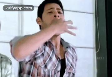 Mahesh Babu makes a funny whistle expression with his hand in a plaid shirt.