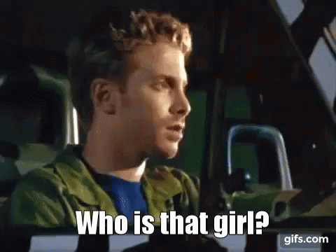Oz from Buffy the Vampire Slayer, looking amazed and asking 'Who is that girl?' while sitting in a car.