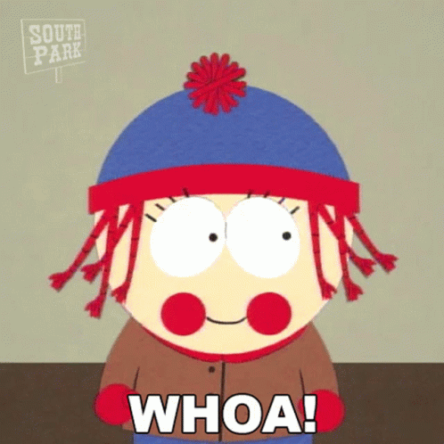 Stan Marsh from South Park looks surprised and exclaims 'Whoa!' with wide eyes and an open mouth.