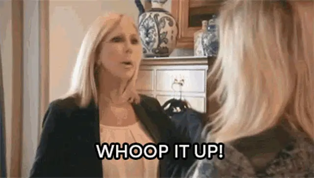 A whimsical drawing of a girl in a purple dress, upside down, with the playful text 'Whoo Hoo' below her.