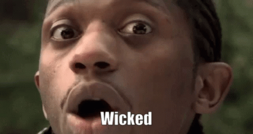 A man's face with wide eyes and an open mouth, featuring the word 'Wicked' as a caption.