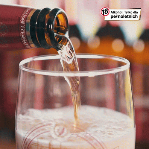 A bottle of Widzew Lodz beer is poured into a glass, with an 18+ alcohol warning visible.