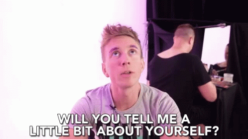 Tyler Oakley asks, 'Will you tell me a little bit about yourself?' in an interview setting.