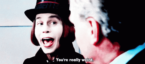 Willy Wonka, in his signature top hat, looks at someone and says, "You're really weird."