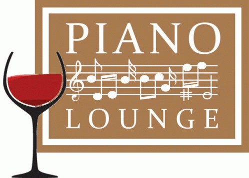 Logo for Piano Lounge featuring a wine glass, musical notes, and the text "PIANO LOUNGE".