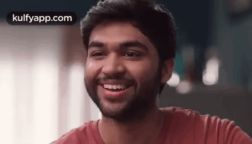 A smiling man with a beard winks playfully at the camera, wearing a red shirt.
