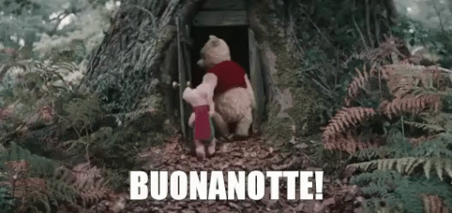 Winnie The Pooh and Piglet head into their treehouse for the night, wishing everyone sweet dreams.