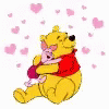 winnie the pooh and piglet are hugging each other while hearts fall from the sky .