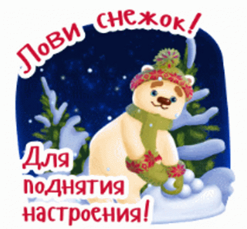 A cute polar bear in a hat and scarf throws snowballs to lift your spirits.