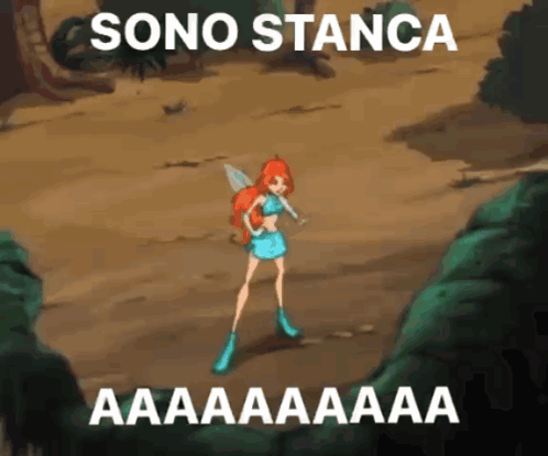 Winx character Bloom expresses exhaustion with the phrase 'Sono Stanca AAAAAAAAAA' in this animated clip.