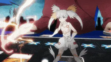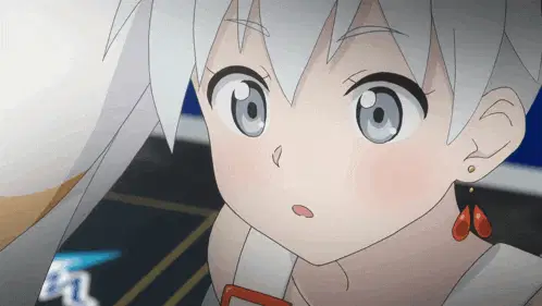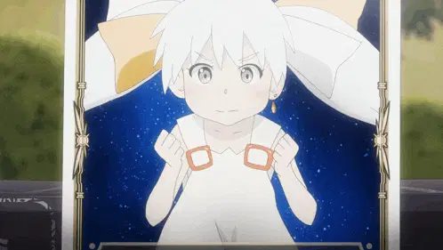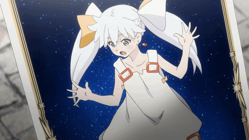 a picture of a girl with white hair and a bow in her hair
