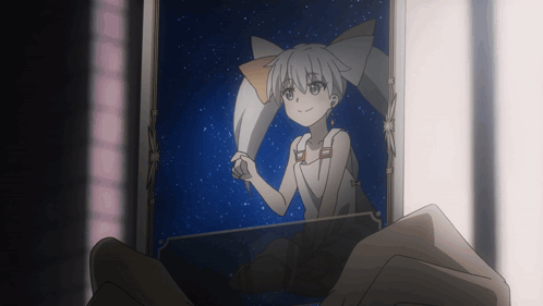 a person is holding a picture of a girl with a bow on her head