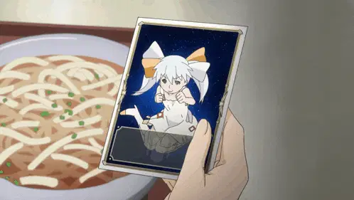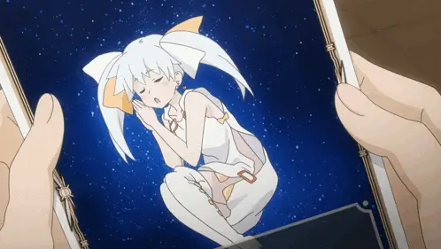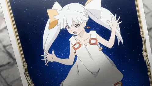 Anime character Tama (Tamayorihime) from Wixoss, with white hair, smiling and nodding happily.