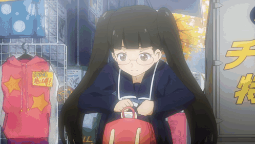 Chiyori, a girl in glasses, happily interacts with an Eldora trading card, drawing on it with a marker.