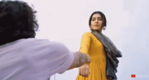 Vijay Deverakonda and Rashmika Mandanna share a tender moment, holding hands before she walks away.