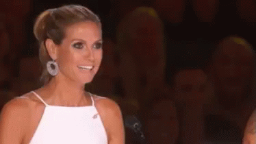 Heidi Klum claps and exclaims 'Wow!' during America's Got Talent, showing an amazed reaction.