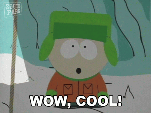 Kyle from South Park reacts with "Wow, cool!" in a snowy scene from the episode "Prehistoric Ice Man."