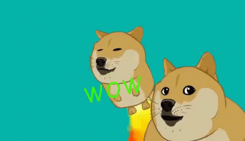 An animated Doge meme character takes flight with a rocket jetpack, humorously asking 'where hostess?'