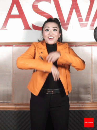 Fitri Carlina expresses excitement with a 'Wow Wah' gesture in front of the Nagaswara sign.