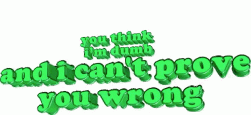 A humorous animated green text displays the phrase 'you think i'm dumb and i can't prove you wrong'.