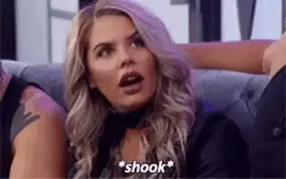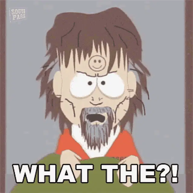 A man with a mustache and a hat reacts with wide eyes, expressing surprise or shock.